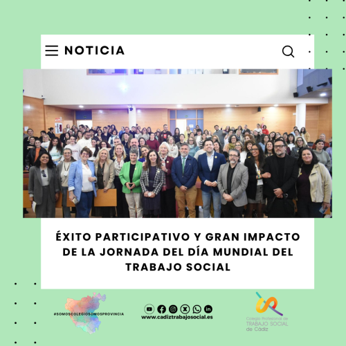 El Colegio Profesional de Trabajo Social de Cádiz, junto a la Universidad de Cádiz, conmemoró ayer el Día Mundial del Trabajo Social con una jornada intensa, llena de significado, éxito participativo y aforo completo, donde se puso en valor la fuerza colectiva de la profesión con una proyección nacional. Además, se presentó la nueva Escala de valoración de la exclusión social por parte de la Junta de Andalucía.