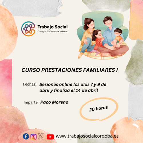 Te informamos sobre el nuevo Curso online “PRESTACIONES FAMILIARES I”, organizado por nuestro Colegio Profesional e impartido por Paco Moreno.