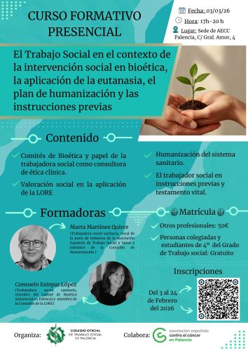 CURSO PRESENCIAL: “El Trabajo Social en el contexto de la intervención social en bioética, la aplicación de la eutanasia, el plan de humanización y las instrucciones previas”.