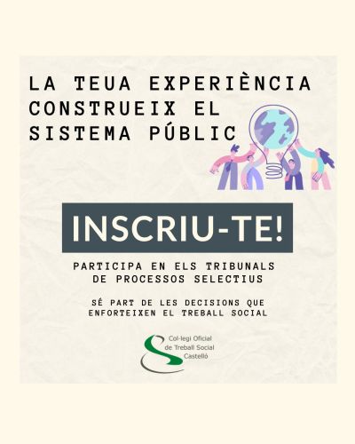 Des del COTS Castelló estem configurant una llista de col·legiades i col·legiats interessats a formar part de tribunals en els processos selectius que convoquen diferents ajuntaments de la província.