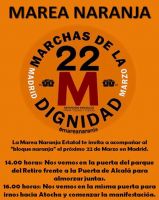 Por eso hacemos un llamamiento a llenar de dignidad y rebeldía la capital del Estado español, Madrid, el 22 de Marzo. Ese día llegaremos columnas de todas las latitudes de la Península a Madrid y convocamos a los madrileños y madrileñas a salir a la calle e incorporarse a esa gran movilización de la mayoría social.