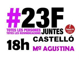 CASTELLÓ: 23 de febrer a les 18h, Plaça Mª Agustina.