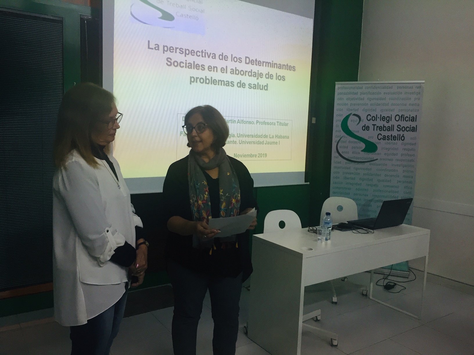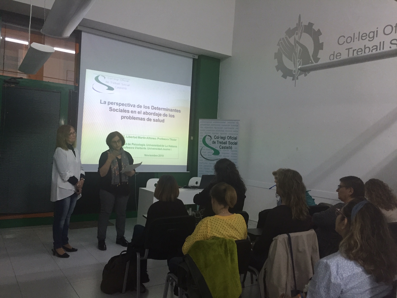 Castelló, 13/11/2019.- El Col•legi Oficial de Treball Social (COTS) de Castelló ha analitzat aquest dimecres com els processos d’exclusió social repercuteixen en la salut dels grups vulnerables. Ho ha fet en la xarrada La perspectiva dels determinants socials en l’abordatge dels problemes de salut, impartida per Libertad Martín, professora titular de Psicologia de la Salut en la Universitat de l’Havana (Cuba) i a l’Escola Nacional de Salut Pública de la capital del Carib.