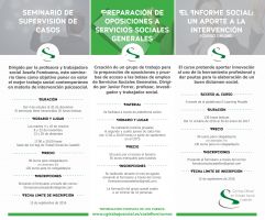 L’Informe Social: una aportació a la intervenció és un curs online –a través de la plataforma E-learning Moodle- que completa l’oferta formativa d’aquest últim semestre de 2016. La iniciativa pretén aportar innovació a l’ús de l’eina professional i donar pautes per a l’elaboració d’un bon dictamen social. Amb una durada de 130 hores lectives, es desenvoluparà del 31 octubre de 2016 al 30 de gener de 2017. La data límit d’inscripció és el 15 Setembre de 2016.