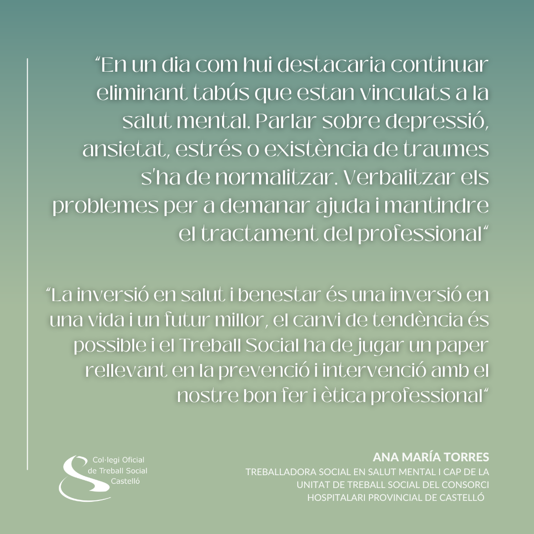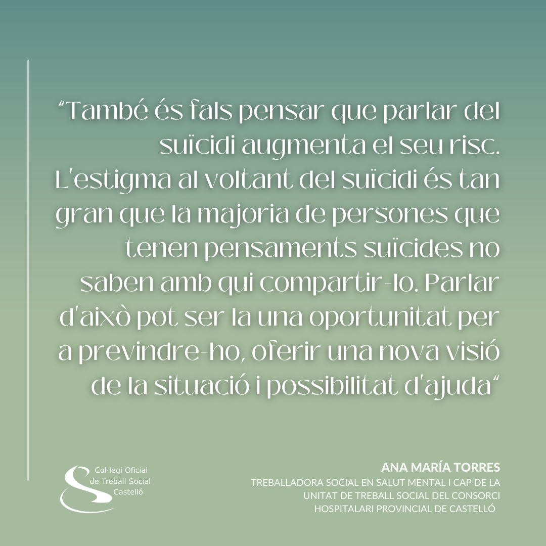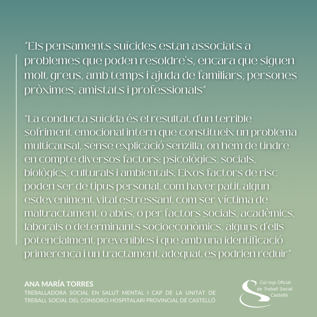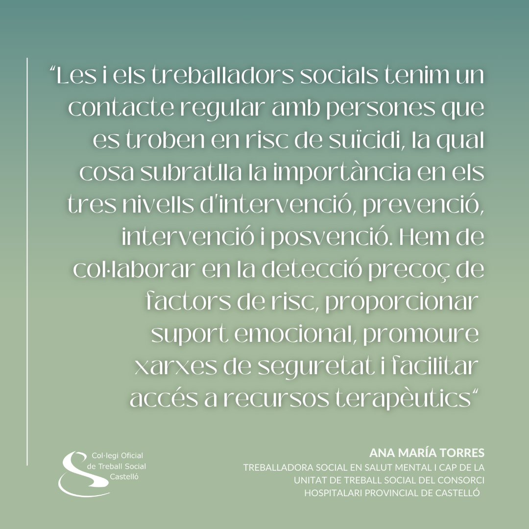 ENTREVISTA A ANA MARIA TORRES, TREBALLADORA SOCIAL EN SALUT MENTAL: “El suïcidi és freqüent i devastador; moltes vegades no es pot predir, però sí previndre; la seua prevenció és una responsabilitat social”