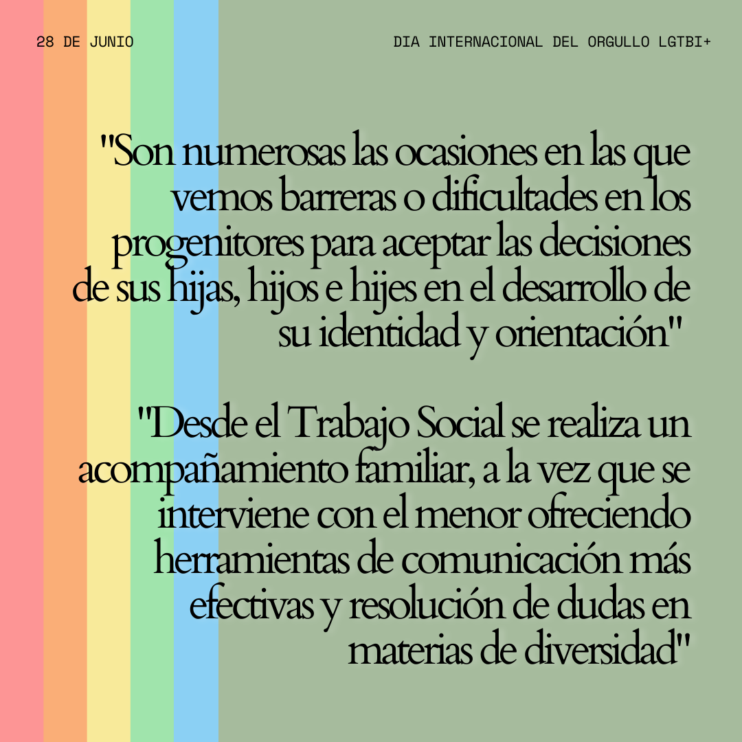“El trabajo social con las familias se centra en atender las necesidades de todo el núcleo. Acompañamos en el proceso de aceptación de la orientación y la identidad, mientras se ofrecen al menor herramientas de comunicación más efectivas y resolución de dudas en diversidad”