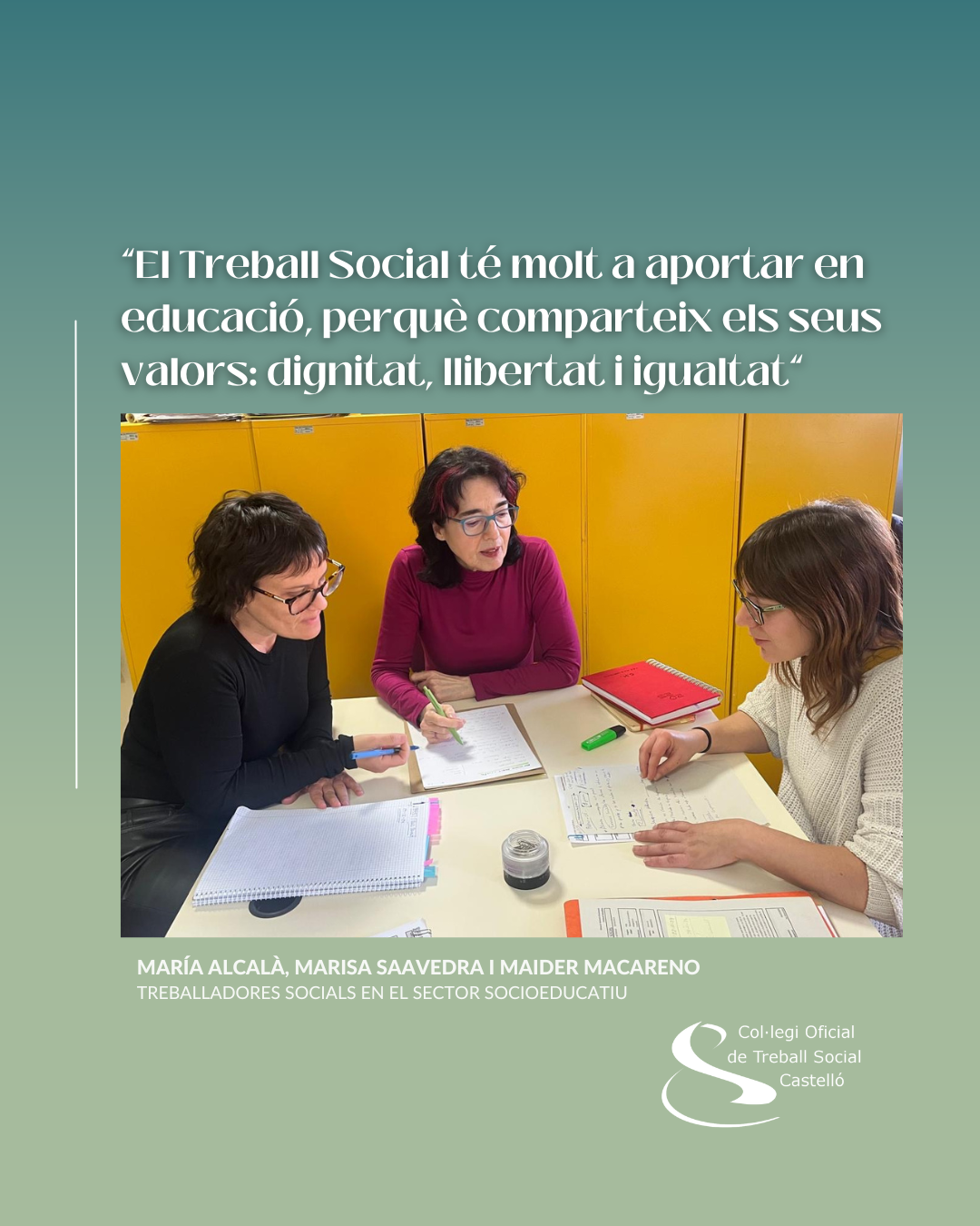 ▪ Una conversa a tres bandes amb tres professionals del TS en les Unitats Especialitzades d’Orientació Educativa filen aquesta entrevista del Col·legi Oficial de Treball Social de Castelló pel Dia Internacional de l’Educació.