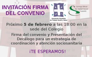 El próximo día día 5 de Febrero, vamos a firmar un convenio de colaboración con la Asociación Española de Trabajo Social y Salud a nivel de Comunidad Valenciana