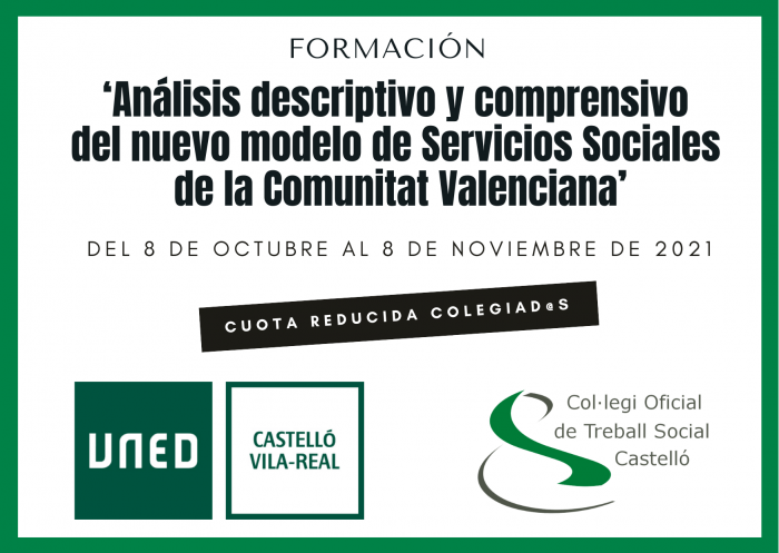 La UNED y COTS Castelló desgranan en 6 sesiones formativas las novedades y el desarrollo normativo del nuevo modelo valenciano de Servicios Sociales