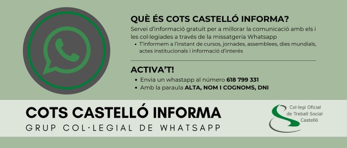 COTS Castelló reforça la comunicació amb els seus col·legiats i col·legiades amb un servei de missatgeria via Whatsapp gratuït