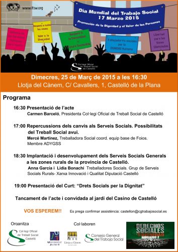 Con motivo de esta celebración del Día Mundial del Trabajo Social el Colegio de Castellón celebra una jornada el próximo 25 de marzo.