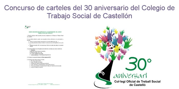 El Col·legi de Treball Social de Castelló ha convocado un concurso de carteles para la celebración del 30 aniversari Col·legi de Treball Social de Castelló.