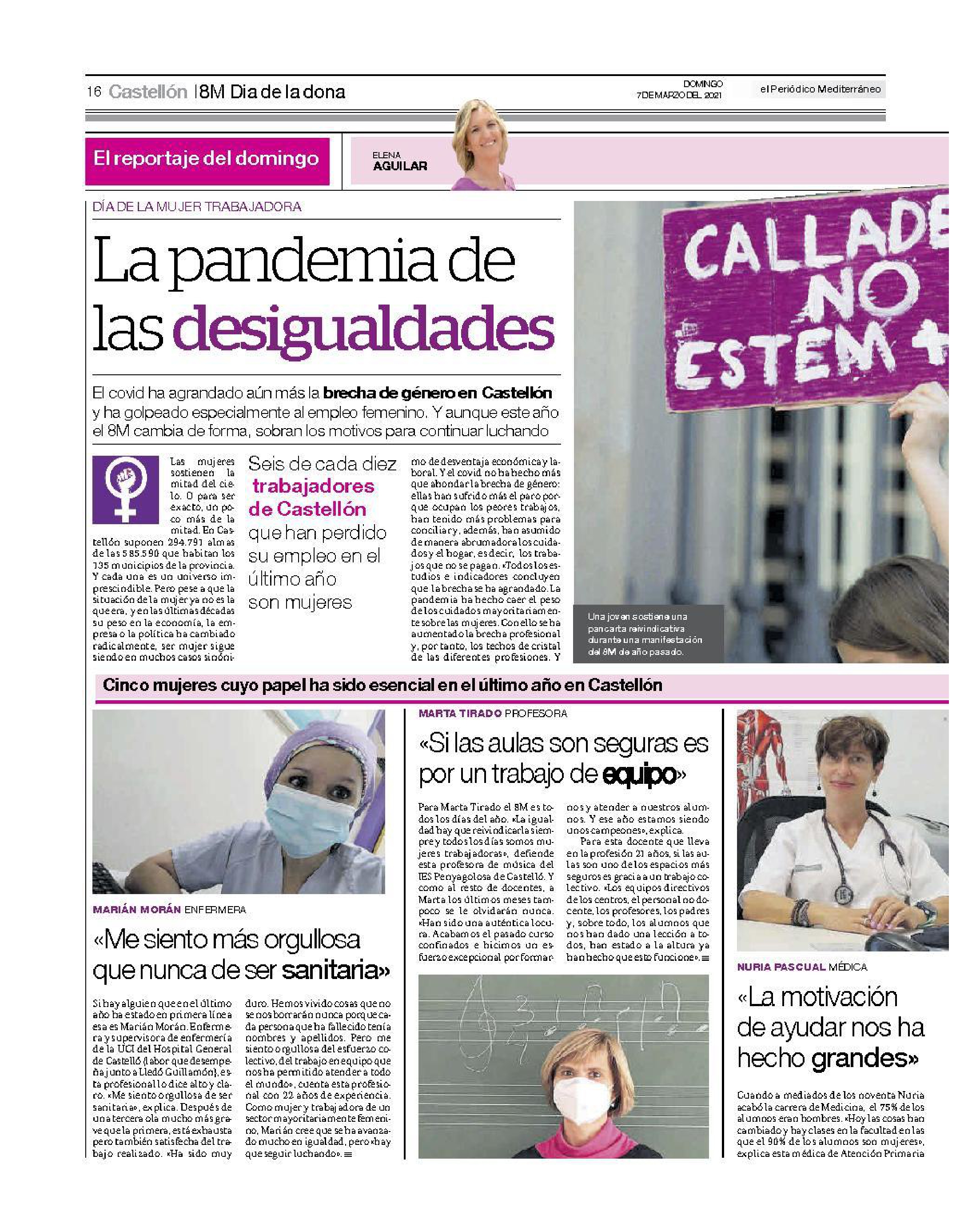 Castelló, 08/03/2021.- Los y las trabajadoras sociales llevan la igualdad en su ADN. “Es algo transversal a nuestra profesión y, de hecho, cada día luchamos por remover y vencer los obstáculos que pueda haber en la sociedad y que impidan alcanzar la igualdad”. Nuestra compañera y trabajadora social sanitaria Marisa García participa en este reportaje del periódico Mediterráneo sobre ‘Mujeres esenciales frente a la pandemia’ con motivo del #8M #DíaInternacionaldelaMujer.