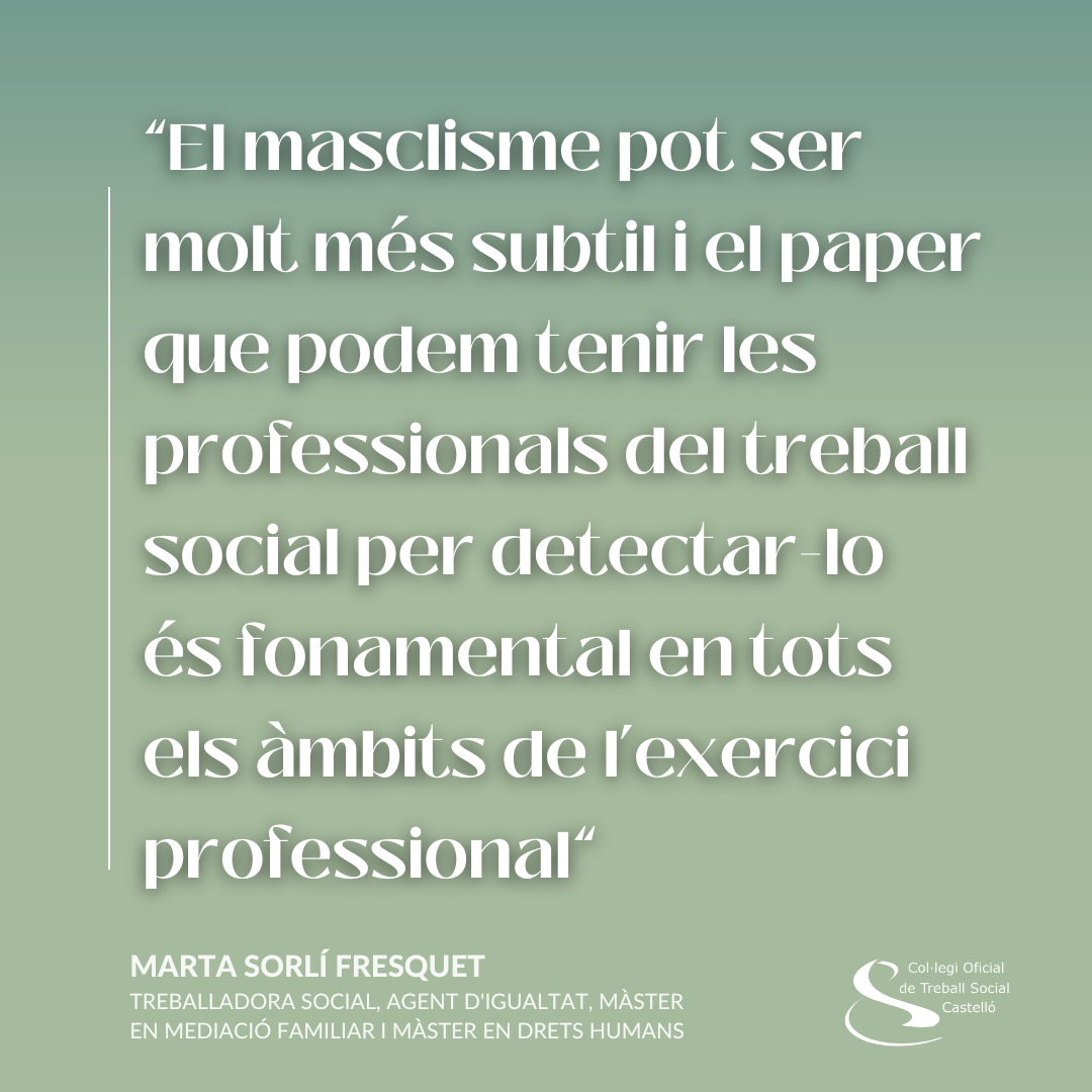 El masclisme pot ser molt més subtil i el paper que podem tenir les professionals del treball social per detectar-lo és fonamental en tots els àmbits d exercici professional.