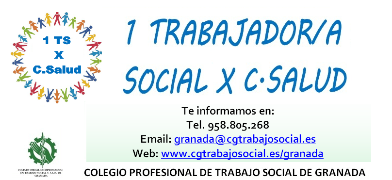 Desde el Colegio Profesional de Trabajo Social de Granada, os informamos que se ha iniciado la campaña “1 TS X C.Salud”, con la que se pretende reivindicar la cobertura de plazas vacantes de Trabajadores Sociales en Salud.