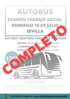 Informamos que el autobús organizado para el traslado de opositores y opositoras a Sevilla el próximo día 10 de julio, ya esta COMPLETO.