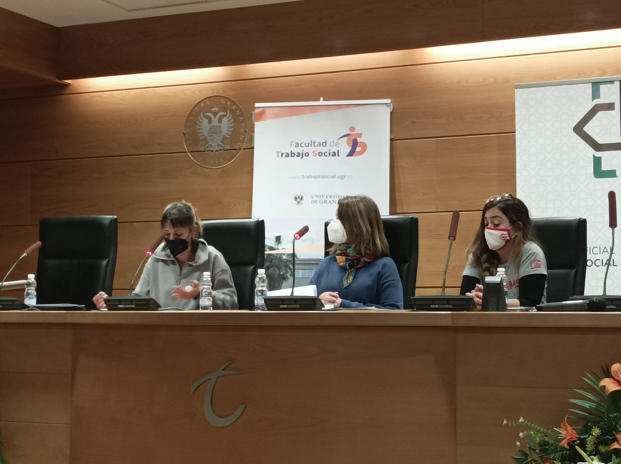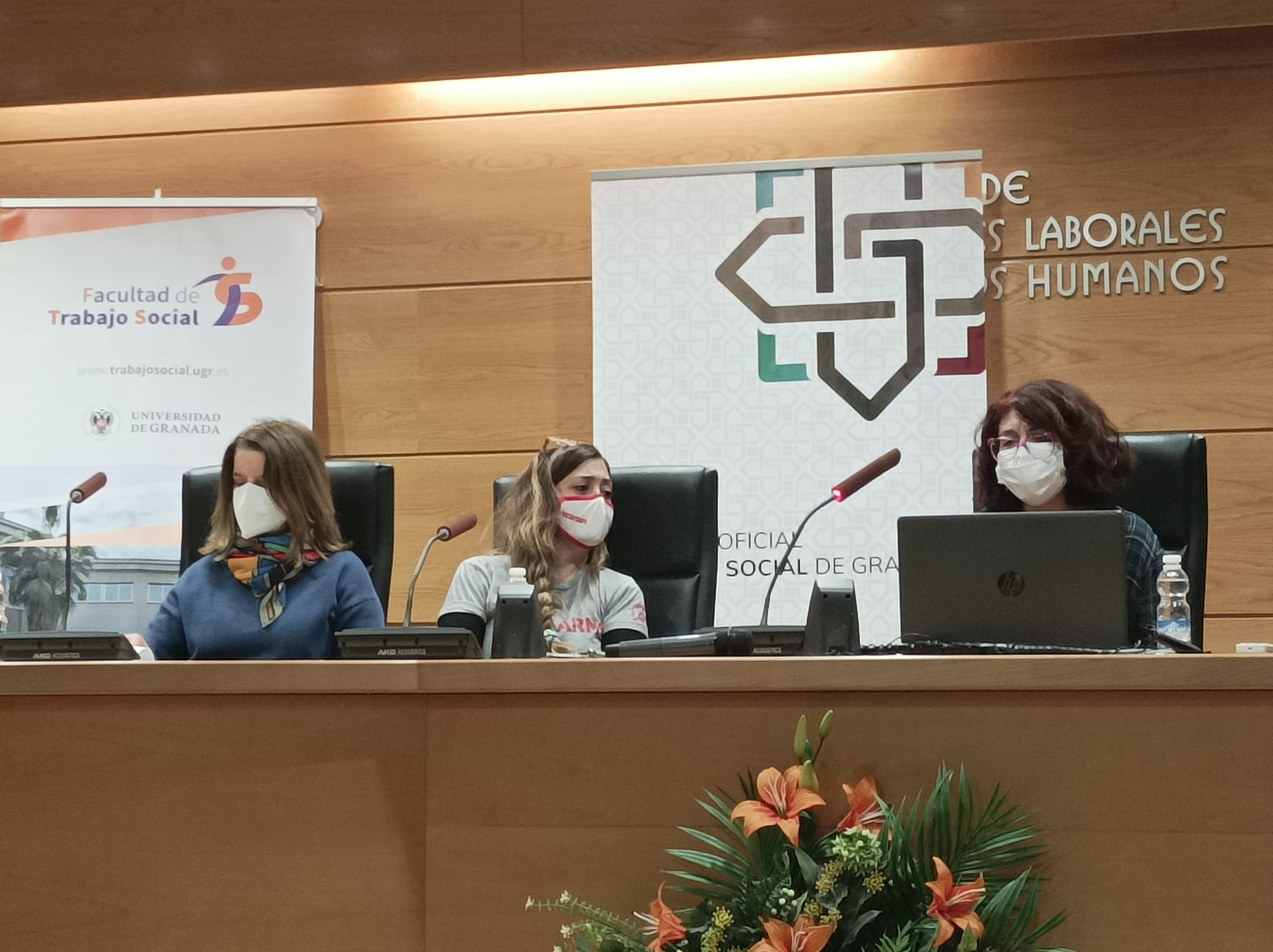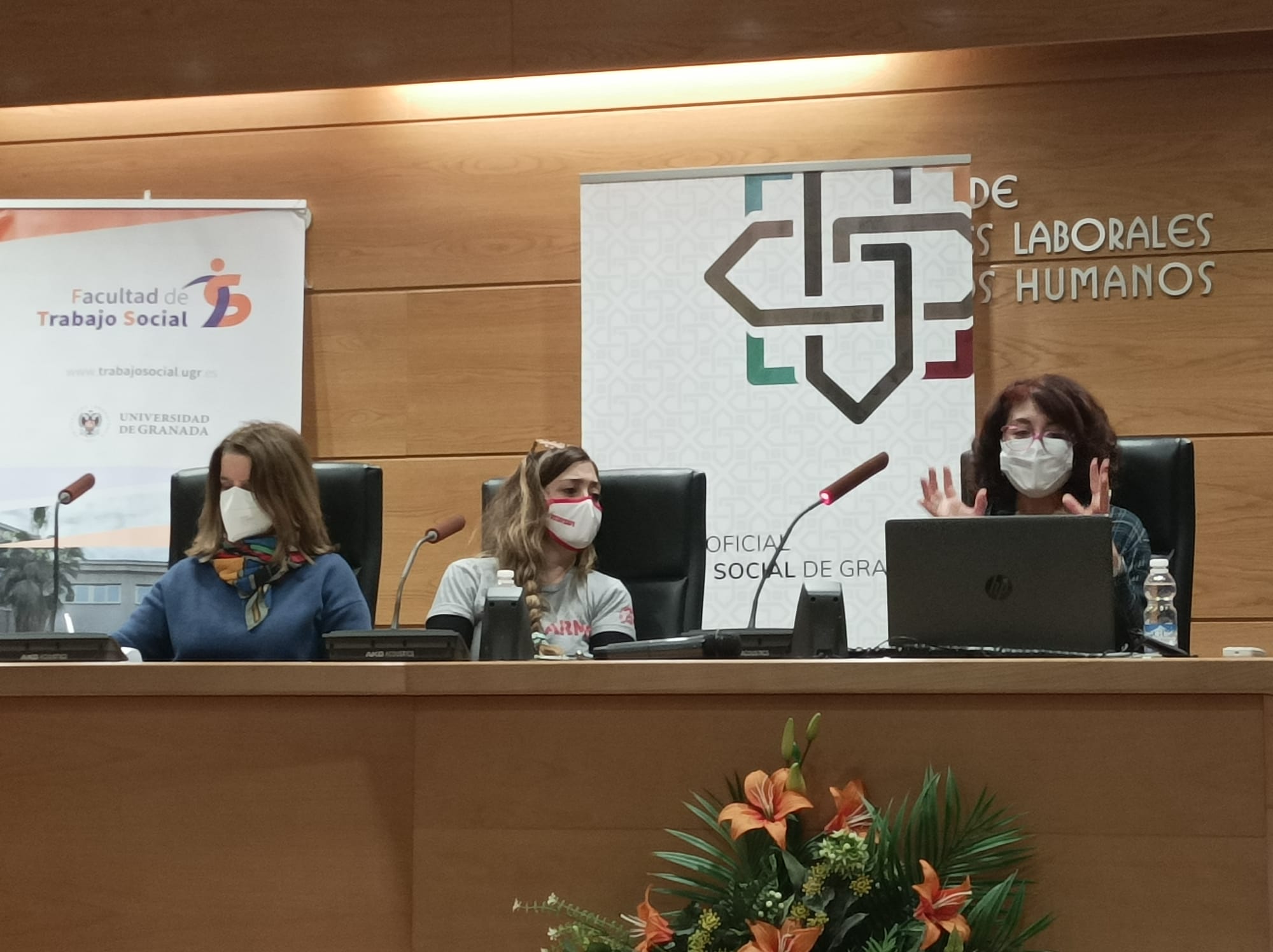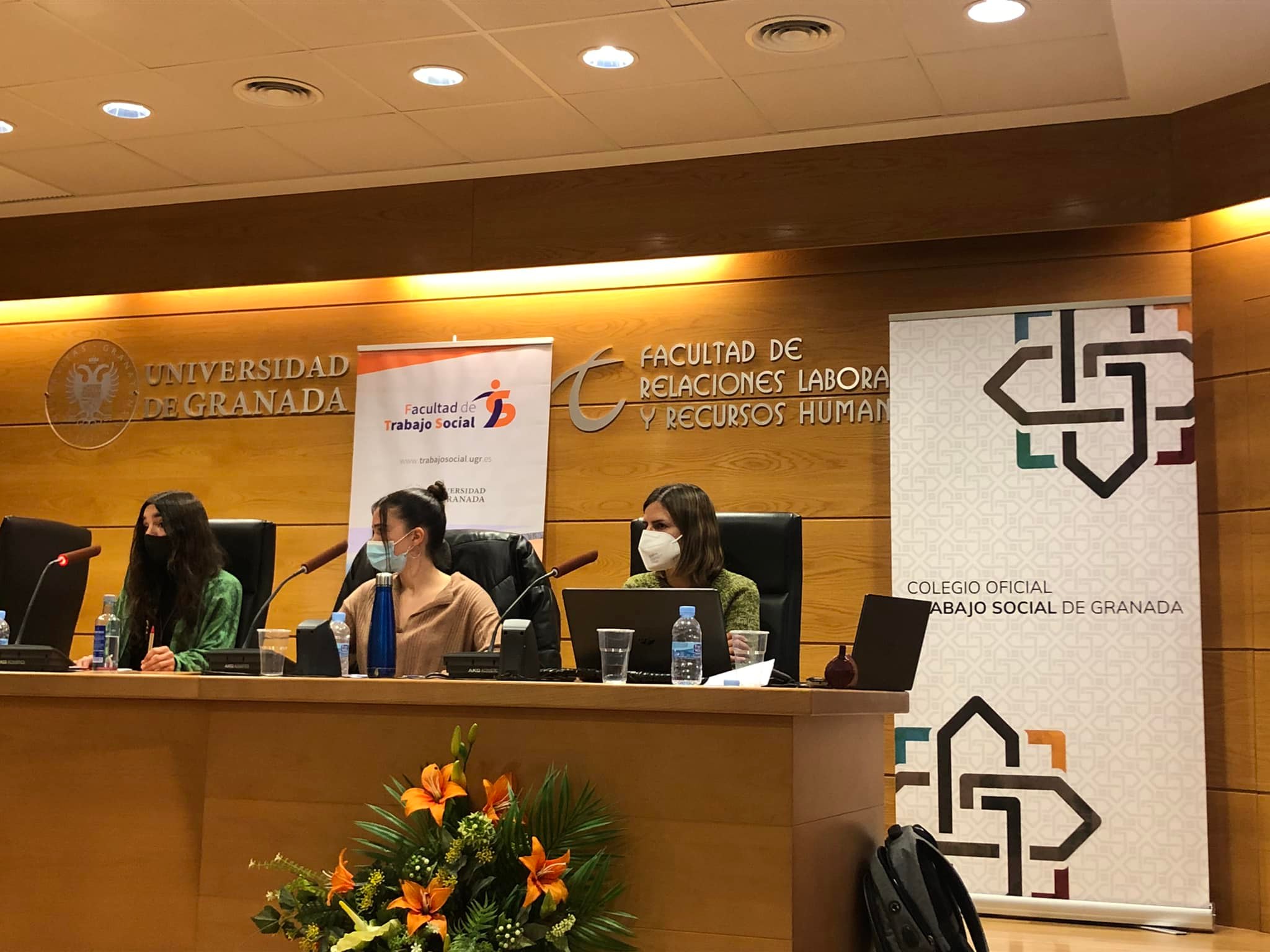 Gracias a quienes han formado parte de estas interesantísimas Jornadas en las que hemos compartido, reflexionado, reivindicado y apostado por un Trabajo Social basado en el enfoque de los derechos humanos. Gracias a todas las personas asistentes, a las ponentes, al estudiantado, a todas las autoridades que han compartido estos momentos de celebración y reivindicación y a las compañeras del Colegio Profesional Trabajo Social de Granada, a las colegiadas que nos han acompañado y a nuestras técnicas, Kica y Sol, por su gran trabajo.