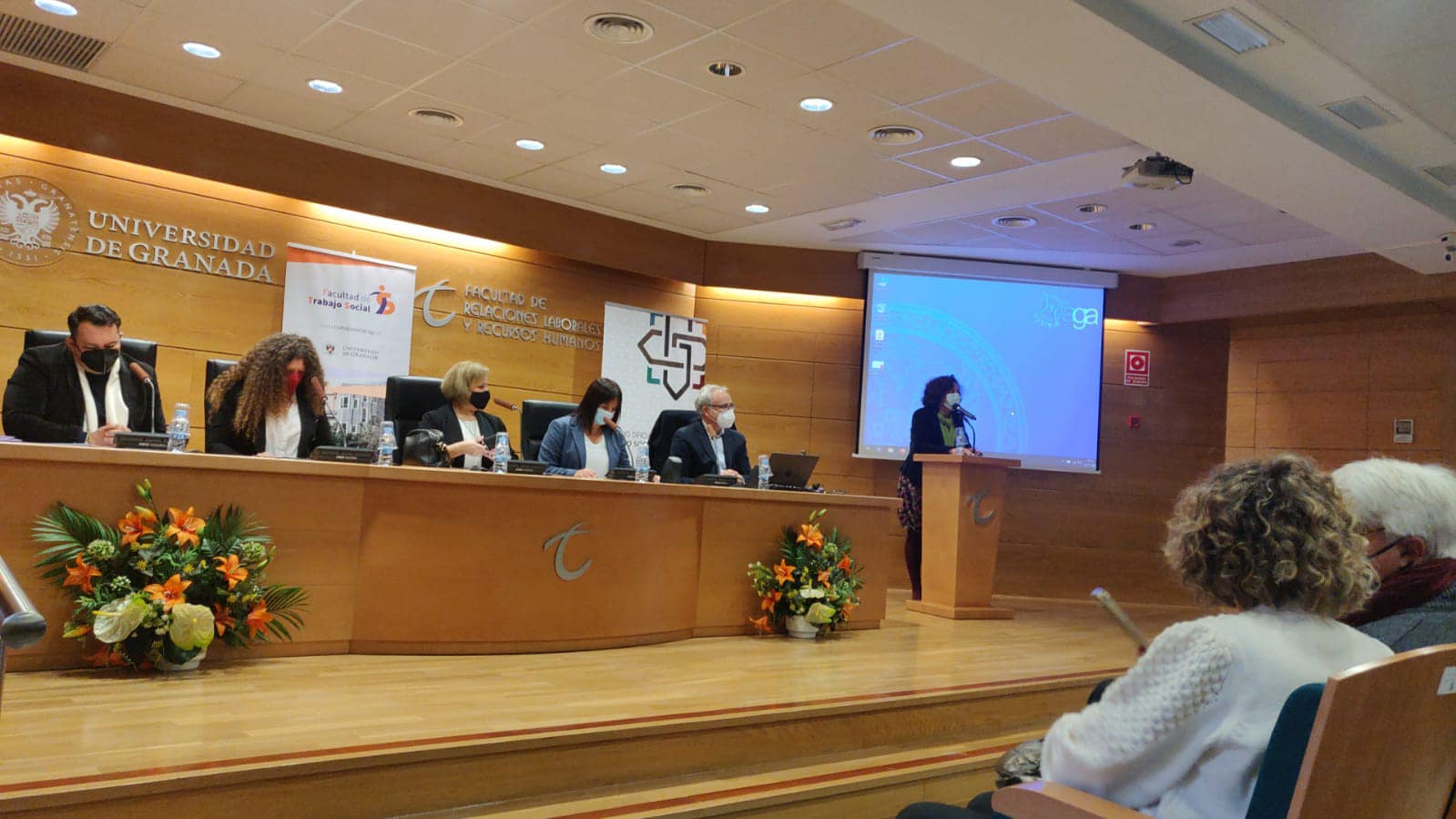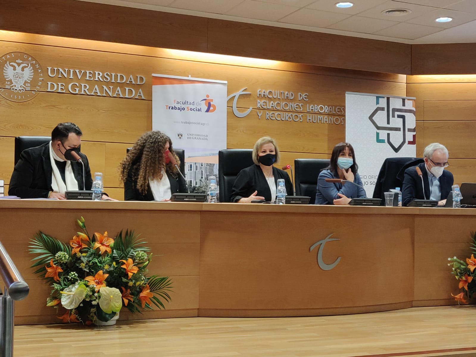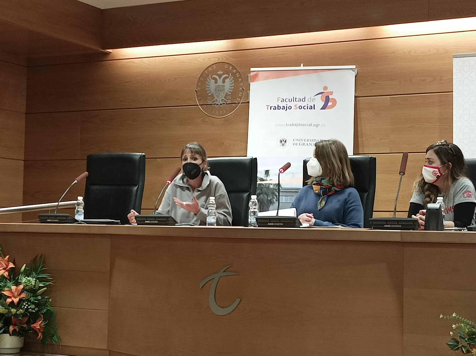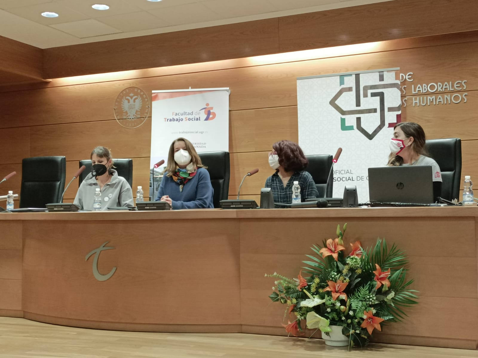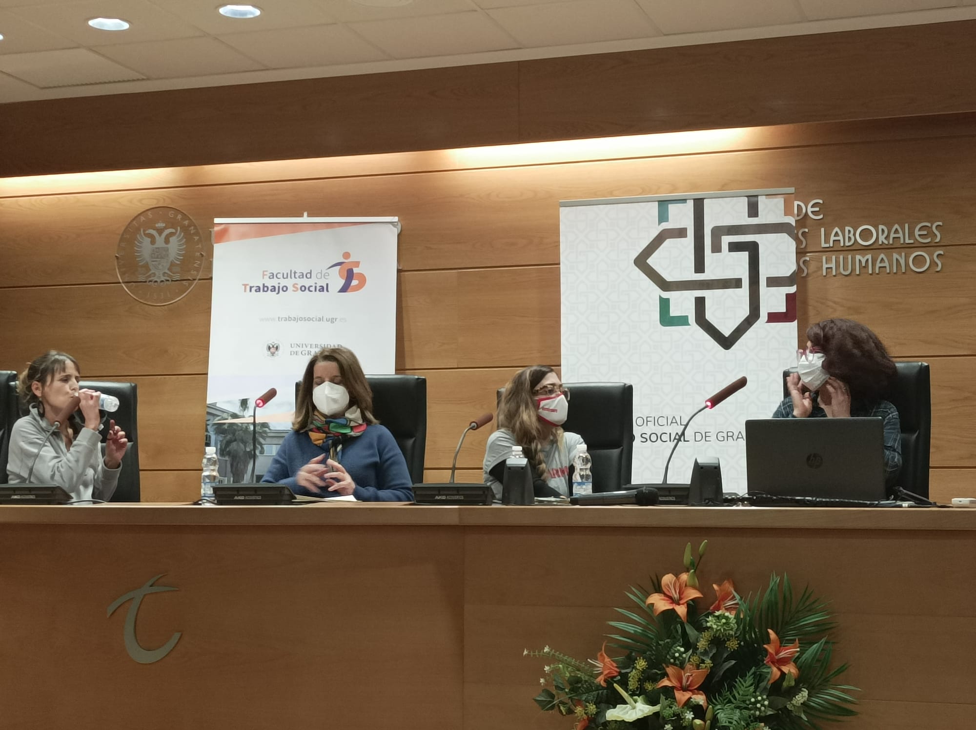 Gracias a quienes han formado parte de estas interesantísimas Jornadas en las que hemos compartido, reflexionado, reivindicado y apostado por un Trabajo Social basado en el enfoque de los derechos humanos. Gracias a todas las personas asistentes, a las ponentes, al estudiantado, a todas las autoridades que han compartido estos momentos de celebración y reivindicación y a las compañeras del Colegio Profesional Trabajo Social de Granada, a las colegiadas que nos han acompañado y a nuestras técnicas, Kica y Sol, por su gran trabajo.