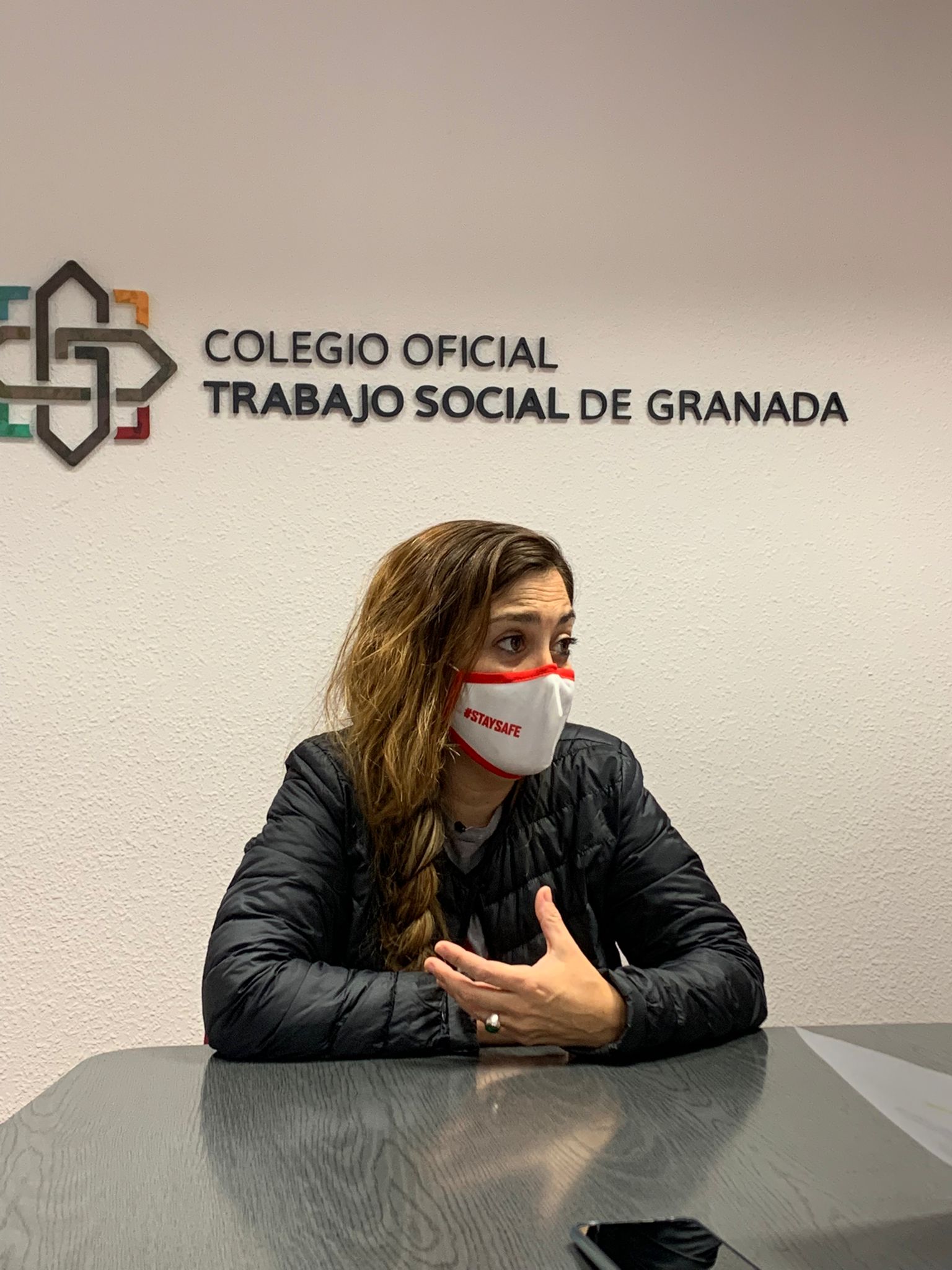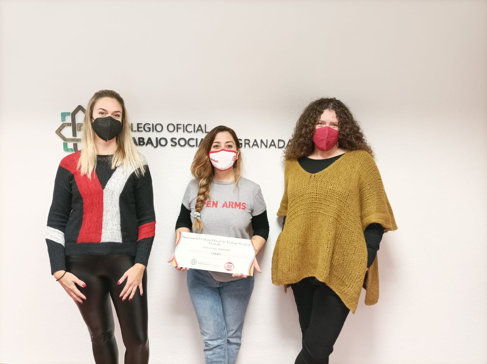 Aprovechando la visita de Ángeles a Granada para participar en la Jornada de Derechos Humanos organizada por el Colegio Oficial de Trabajo Social de Granada y la Facultad de Trabajo Social prevista para el día 9 de diciembre de 2021, ésta pasó por el Colegio para formalizar la entrega de la donación económica del Colegio por la venta de Bolsas de tela solidarias.
