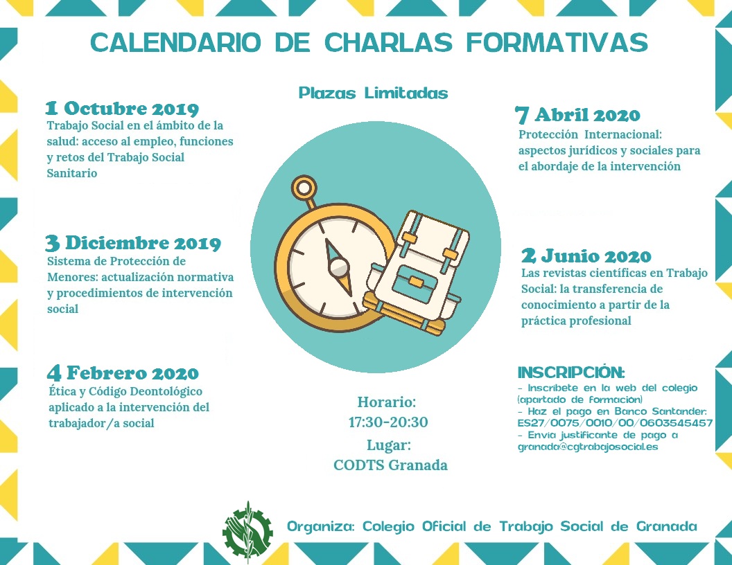El CODTS de Granada presenta el I Ciclo de Charlas Formativas sobre ámbitos de intervención del Trabajo Social, calendarizadas bimensualmente con una duración de tres horas y que versan sobre temáticas de especial interés para nuestra profesión con el objetivo de favorecer la actualización de conocimientos y el abordaje de novedades de carácter normativo y/o administrativo con incidencia directa en la intervención profesional.