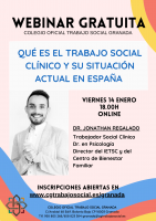 Es un placer para el Colegio Oficial de Trabajo Social de Granada, volver a contar con el Dr. Jonathan Regalado que ofrecerá una webinar gratuita para todas las personas colegiadas que lo deseen y que versará sobre Trabajo Social Clínico.