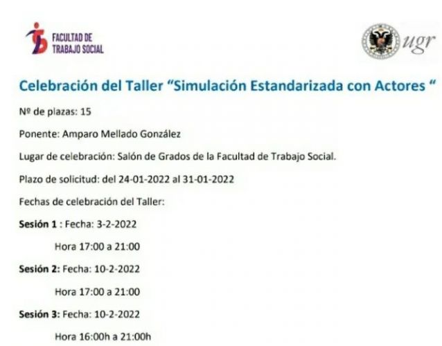 La Facultad de Trabajo Social de Granada organiza el Taller de Simulación Estandarizada con actores, cuyo objetivos son: