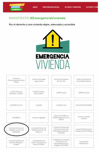 El Colegio Oficial de Trabajo Social de Granada, se adhiere al Manifiesto #emergenciavivienda que ha puesto en marcha la Red Española contra la Pobreza (EAPN)