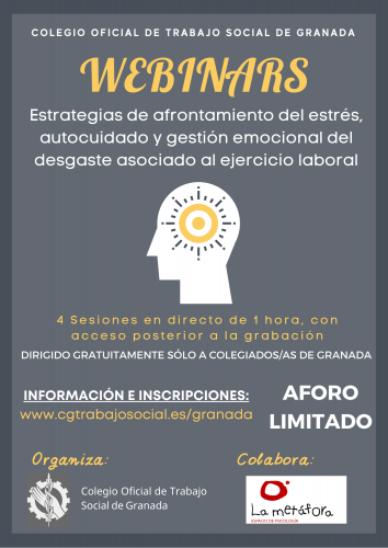 El COTS Granada sensibilizado con las diversas situaciones que atraviesan muchas familias tras las medidas de empleo implementadas durante el estado de alarma, ha decidido llevar a cabo la realización de 4 webinars (es una conferencia, taller, curso o seminario en formato vídeo que se imparte a través de Internet) en los que se aportan herramientas y técnicas específicas, basados en el desarrollo del auto-conocimiento y de las habilidades de inteligencia emocional.