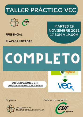Os comunicamos que el próximo día 29 de noviembre, a las 17.30H, tendrá lugar en la sede colegial un nuevo taller sobre la nueva Ventanilla Electrónica de la persona Candidata (VEC), antigua Bolsa del SAS, impartida por sindicato CSIF.