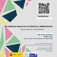 Os informamos sobre la formación en materia de violencia sexual hacia la infancia y adolescencia, que se desarrollará el próximo día 16 de diciembre , a las 12:00 horas, en el salón de plenos del Ayuntamiento de Huétor Vega, organizada por el Centro de Información a la mujer de la Mancomunidad Río Monachil (Granada)