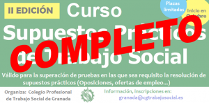Informamos que la II Edición del Curso de Supuestos Prácticos organizado por el Colegio de Trabajo Social de Granada, ha completado el aforo máximo. No quedan plazas disponibles.