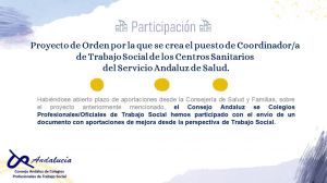 Participación en el Proyecto de Orden por la que se crea el puesto de Coordinador/a de Trabajo Social de los Centros Sanitarios del Servicio Andaluz de Salud.