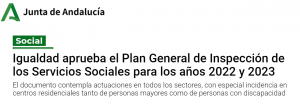 Desde el Colegio Oficial de Trabajo Social de Granada os compartimos el Plan General de Inspección de los Servicios Sociales para los años 2022 y 2023 aprobado por la Junta de Andalucía.
