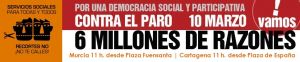 La Cumbre Social de Murcia tras mantener una reunión, acordó llamar a los ciudadanos de la región a una manifestación el próximo domingo 10 de marzo coincidiendo con una Jornada de acción europea convocada por la CES, bajo el lema “Por una democracia social y participativa, contra el paro, 6 millones de razones”.