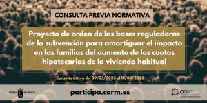 Consulta previa sobre el Proyecto de orden de las bases reguladoras de la subvención para amortiguar el impacto en las familias del aumento de las cuotas hipotecarias de la vivienda habitual