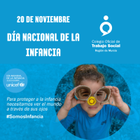 Hoy, 20 de noviembre, en el Día Mundial de la Infancia, la Vocalía de Infancia y Familia del Colegio Oficial de Trabajo Social de la Región de Murcia reconoce el derecho de las/os menores a crecer en un ambiente seguro y bajo un desarrollo integral pleno. La Vocalía se suma a la iniciativa de UNICEF para celebrar este día, compartiendo el lema “todos #SomosInfancia” y la imagen de este año.
