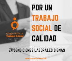 Desde el colegio, en pro de la defensa de los intereses de las/os profesionales de Trabajo Social, demandaremos una mejora de las condiciones laborales y, por tanto, de vida, que hagan cumplir los derechos en todos los contextos de la profesión.