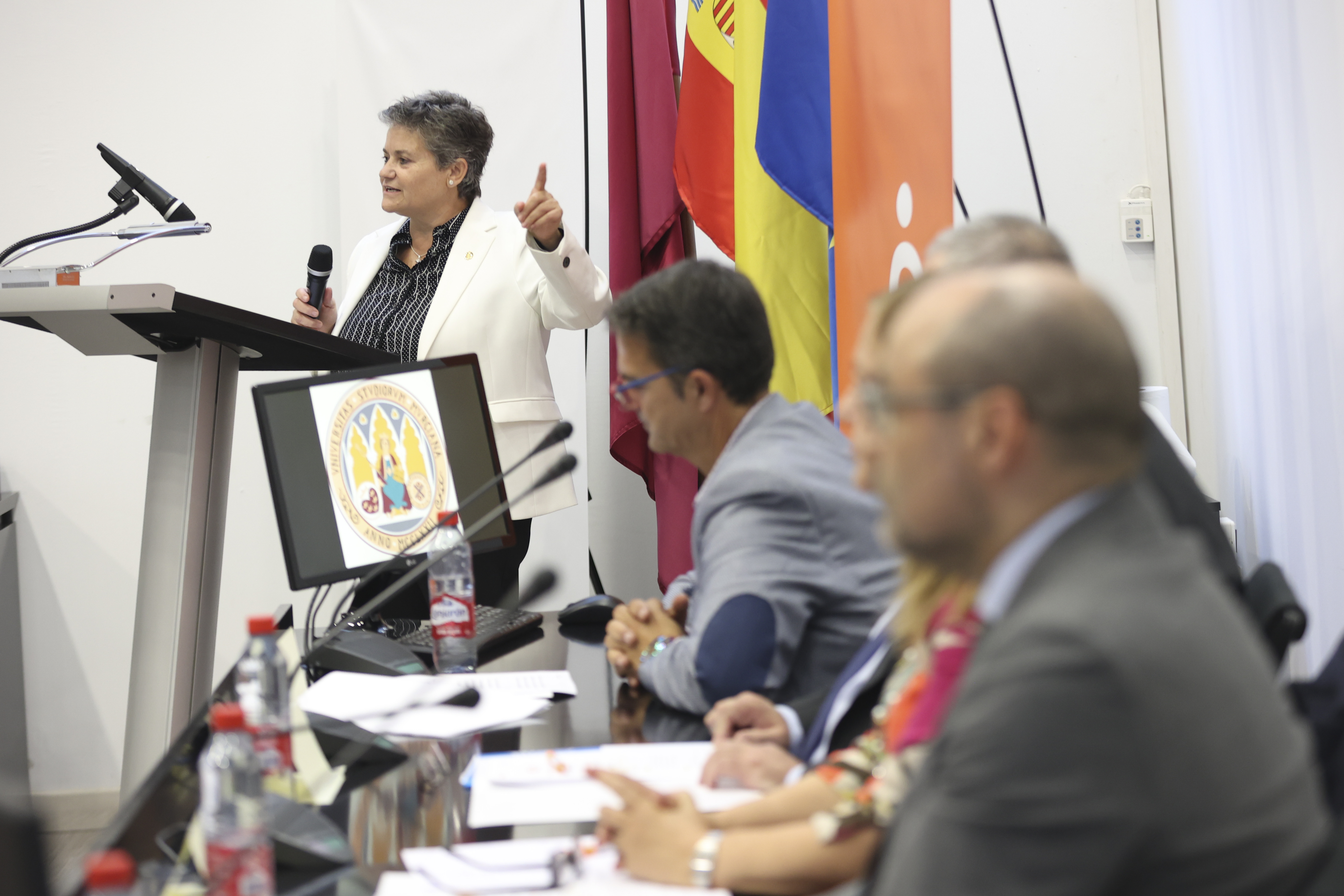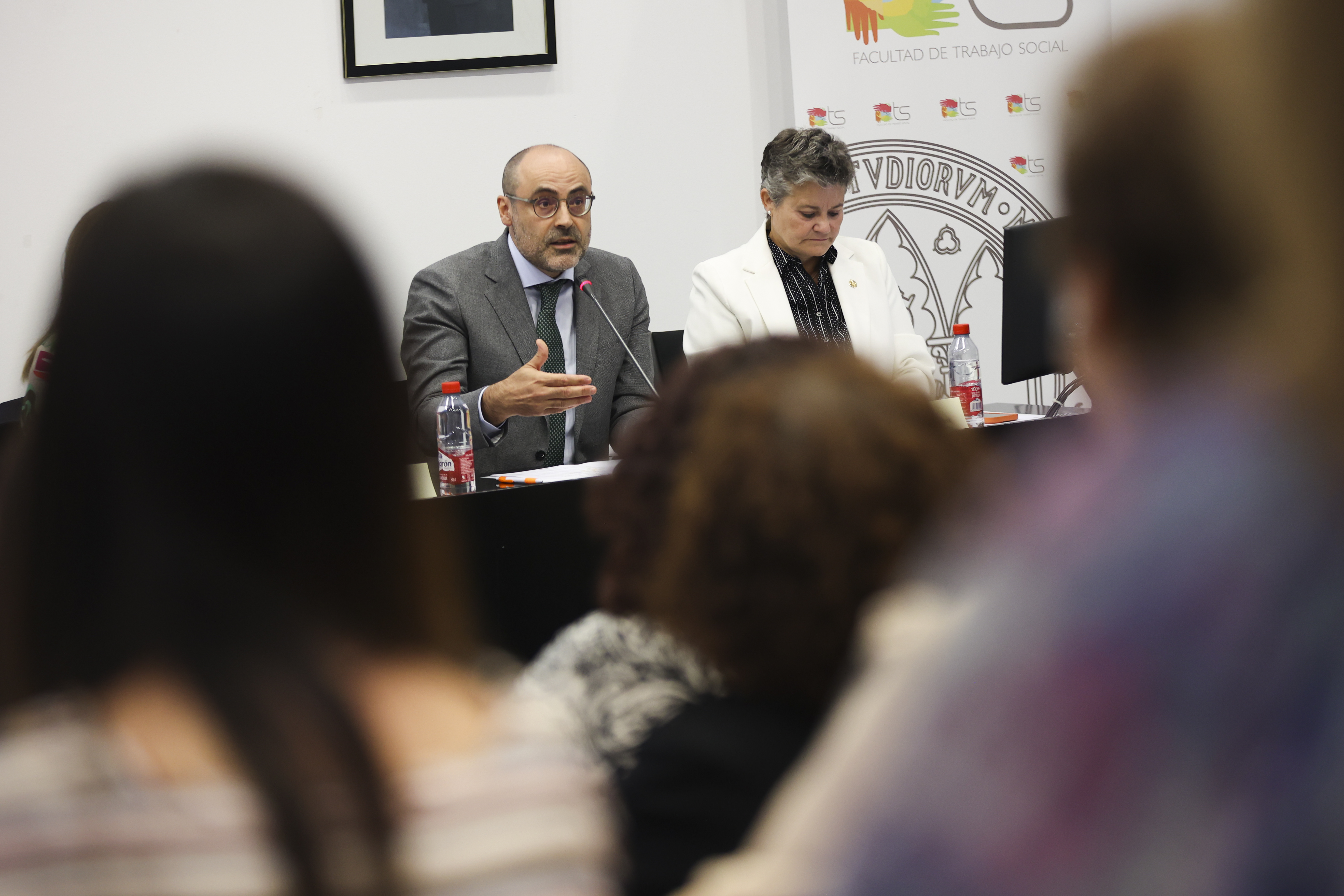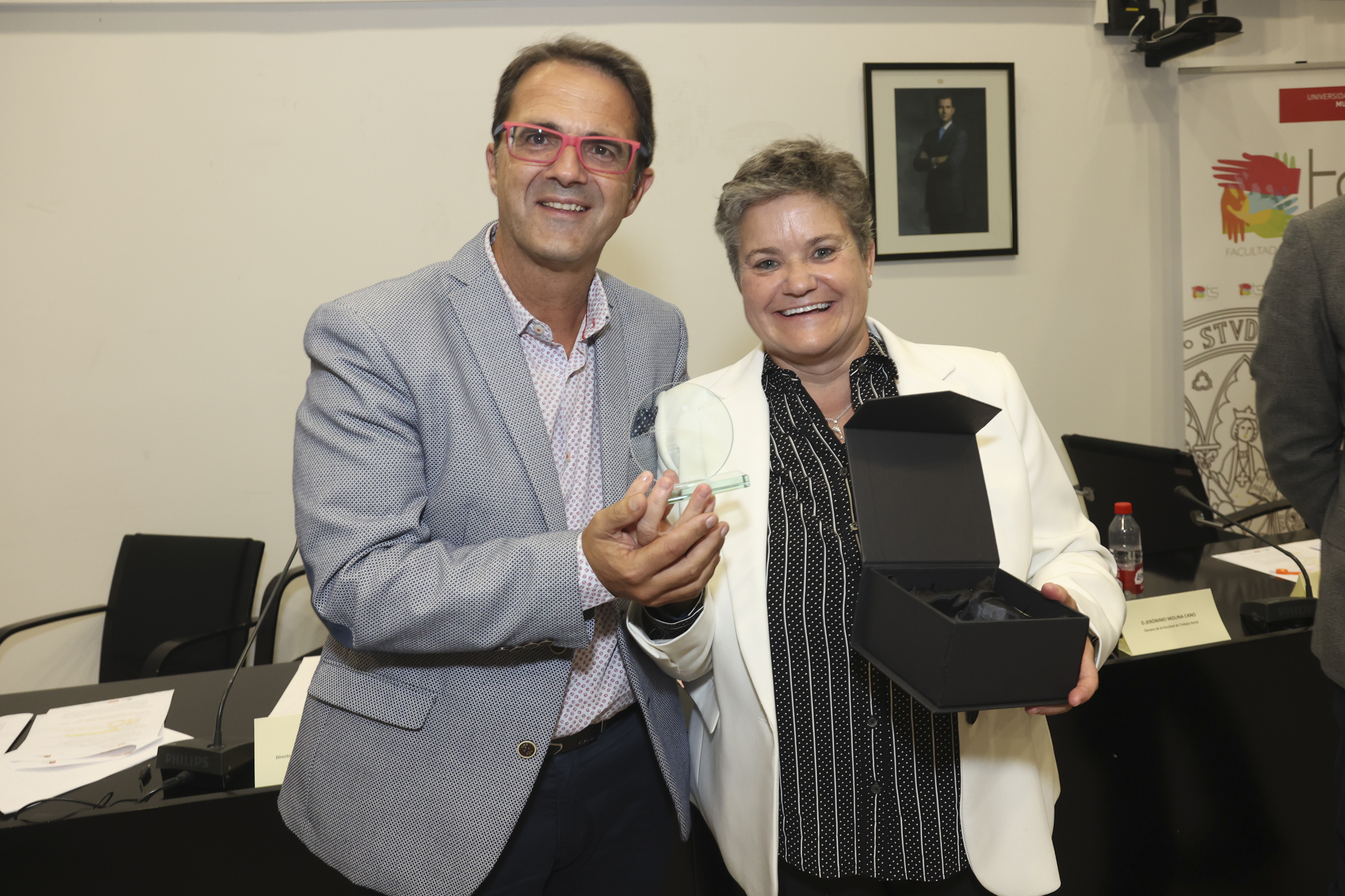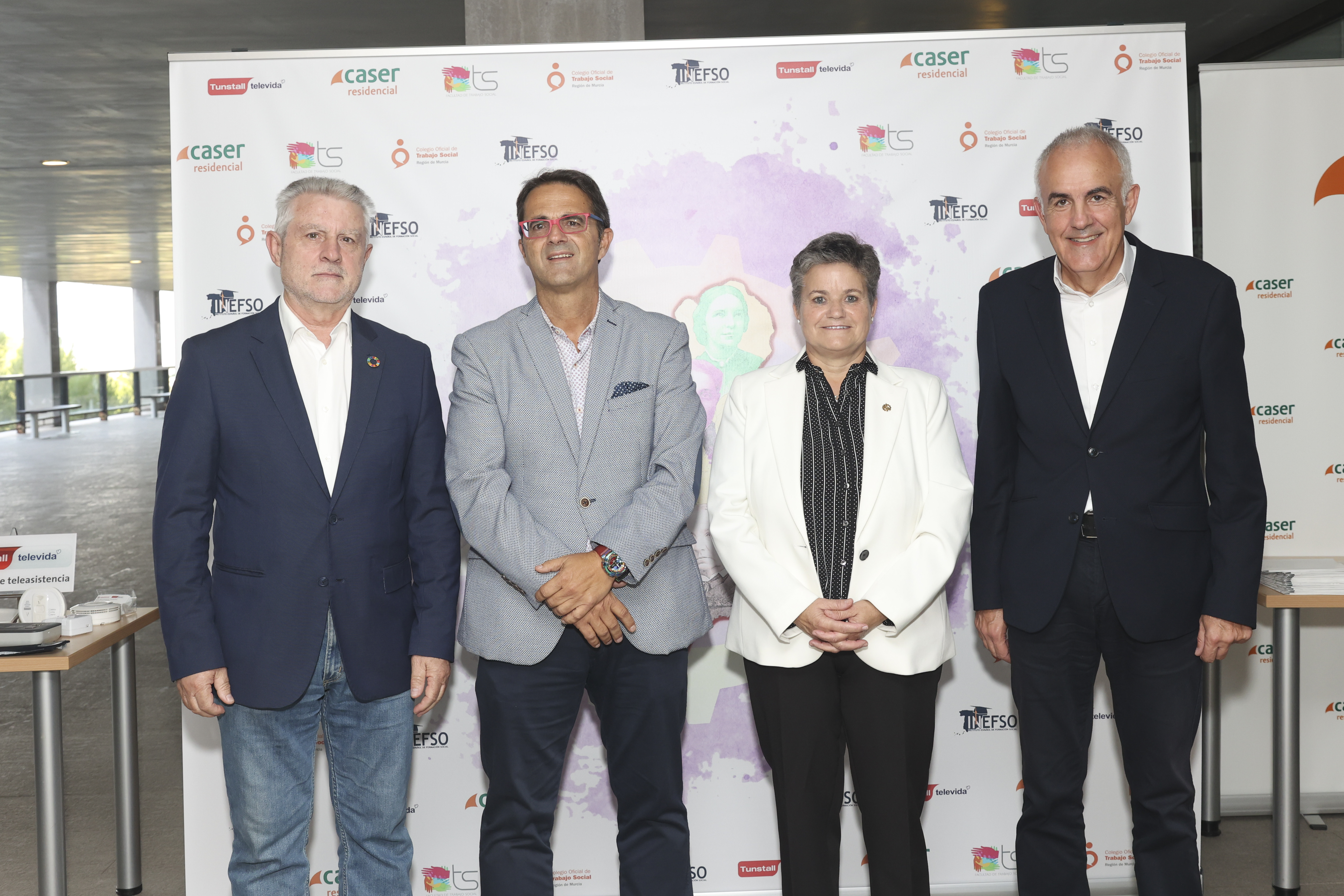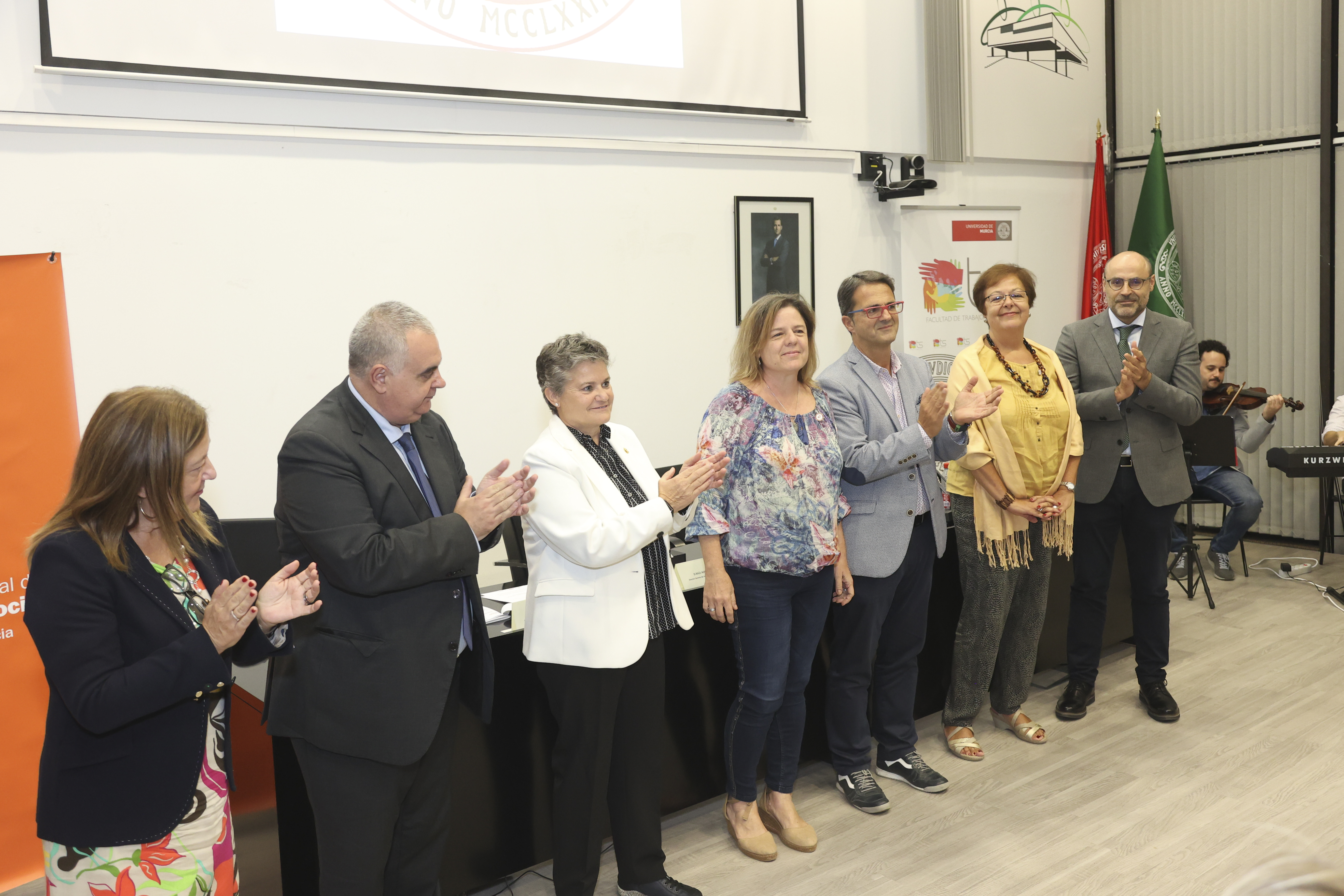El acto ha estado presidido por la Exma. Sra. Dña. Alfonsa García Ayala, Vicerrectora de Coordinación y Calidad de la Universidad de Murcia, el Ilmo. Sr. D. Raúl Nortes Ortín, Director Gerente del Instituto Murciano de Acción Social (IMAS), D. Jerónimo Molina Cano, Decano de la Facultad de Trabajo Social, Dña. Emiliana Vicente González, Presidenta del Consejo General del Trabajo Social y D. Juan Carrión Tudela, Presidente del Colegio del Colegio de Trabajo Social.
