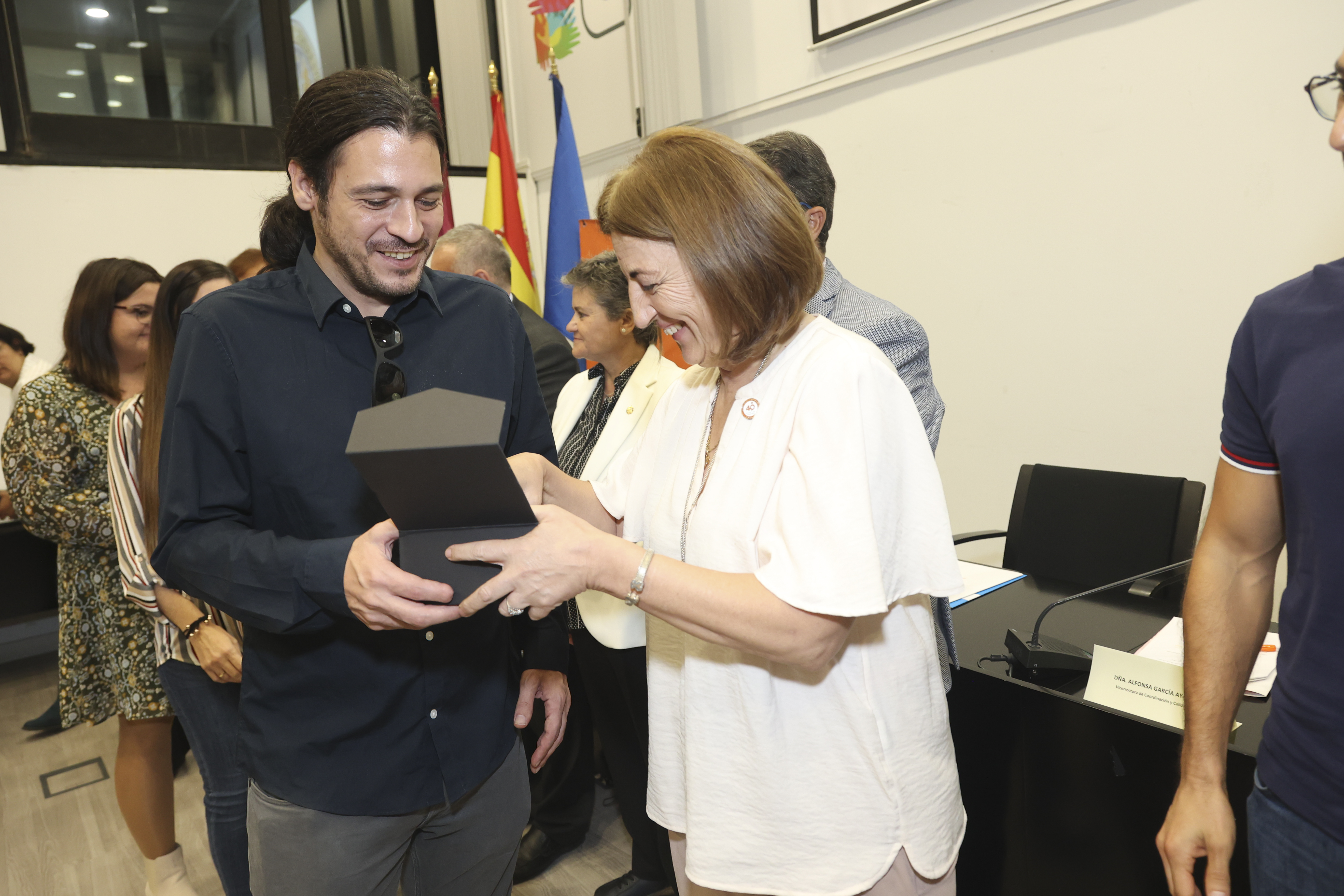 El acto ha estado marcado por el reconocimiento a las presidencias que a lo largo de las diez legislaturas han gobernado el colegio, a las que se les ha hecho entrega de la placa conmemorativa del cuarenta aniversario; y a las/os profesionales de Trabajo Social de los diferentes ámbitos de actuación (discapacidad, dependencia, mayores, servicios sociales, inclusión, vivienda, infancia y familia, violencia de género, emergencias y educación, universidad e investigación, entre otros), a los que se les ha impuesto la insignia del cuarenta aniversario.