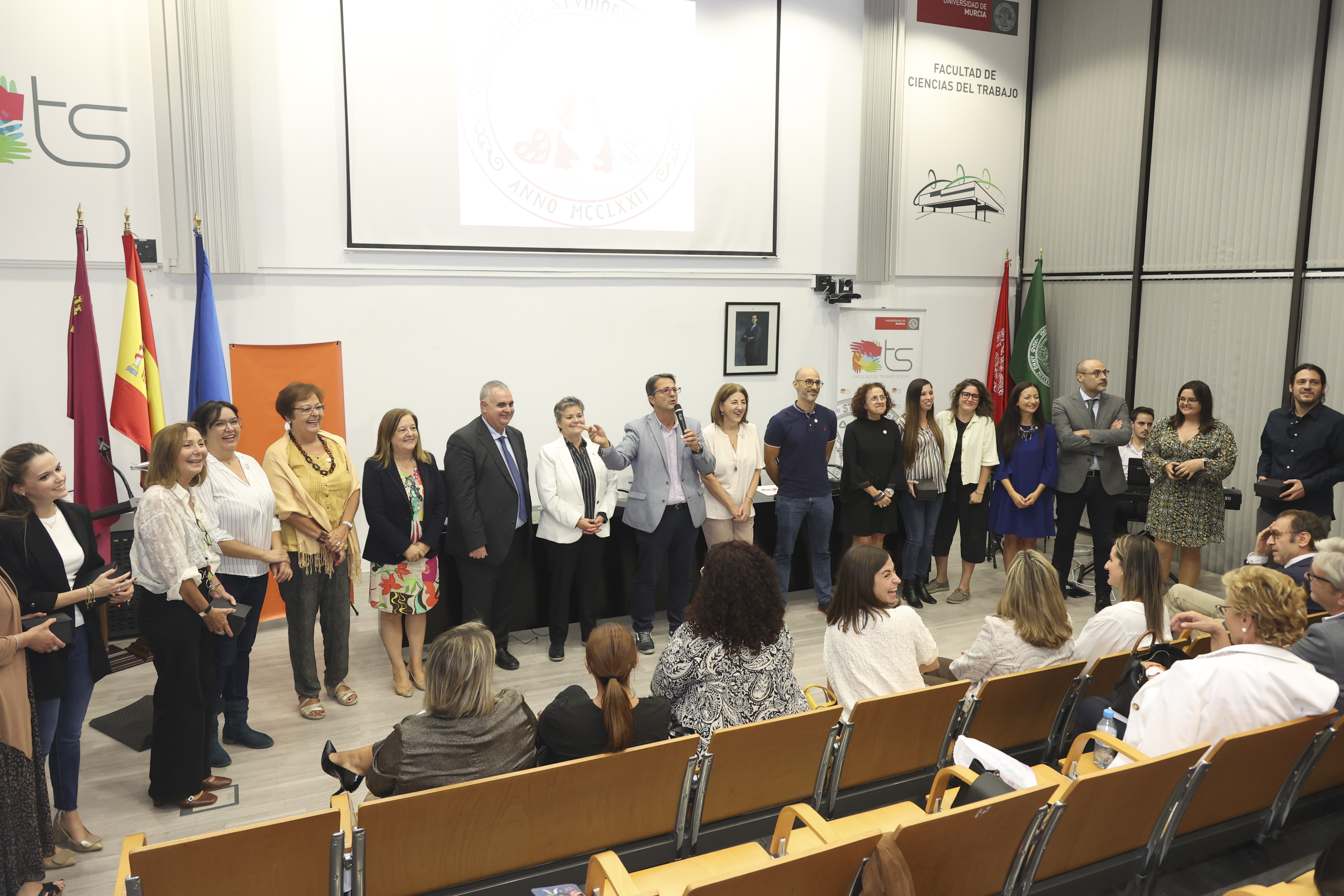 En la Facultad de Trabajo Social de la Universidad de Murcia ha tenido lugar la celebración del acto del cuarenta aniversario del Colegio Oficial de Trabajo Social de la Región de Murcia, al que han acudido más de un centenera de profesionales y alumnado de Trabajo Social.