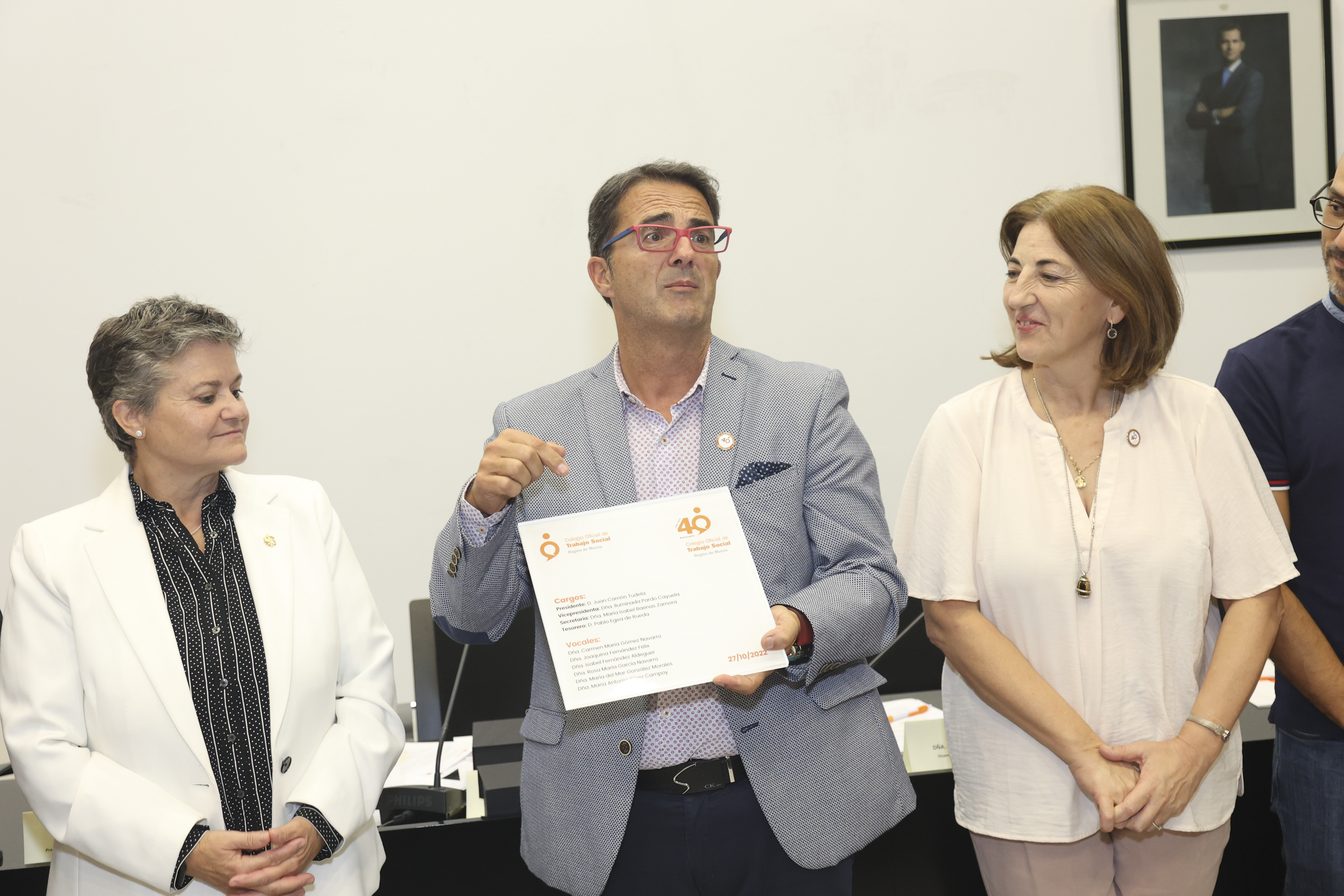 El Presidente del Colegio, D. Juan Carrión Tudela, ha declarado que “en los próximos años, con retos pendientes de afrontar, seguiremos trabajando por el incremento de las ratios, por la creación de planes y recursos adecuados a las necesidades, con menor burocracia, por la mejora de los servicios y por la promoción de la profesión, entre otras, siempre en beneficio de la ciudadanía y del Trabajo Social”.