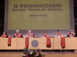 En el acto se dio la bienvenida a más de 100 profesionales que finalizarán próximamente sus estudios. Destacó en el acto la emotiva intervención del padrido de la promoción, D. Manuel Medina y de la madrina, Dña. Elvira Medina; así como un vídeo de los alumnos en el que explicaban su paso por la Universidad y lo que supone y debe ser el Trabajo Social.