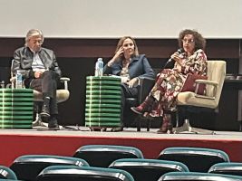 Seguidamente, tras la proyección, dio comienzo un coloquio en el que se analizó la situación de conflicto que presenta la película, moderado por Dña. Iluminada Pardo Cayuela y en la que intervinieron D. Joaquín Ángel de Domingo Martínez, Magistrado de la Sala Civil y Penal del TSJ de la Región de Murcia y Dña. María del Mar González Morales, Trabajadora Social y mediadora. Responsable Servicio Municipal de Mediación de Puerto Lumbreras y vocal del Colegio Oficial de Trabajo Social de la Región de Murcia.