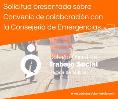 El Colegio ha trasladado la petición a la Consejería para iniciar los trámites de un convenio de colaboración entre la Comunidad Autónoma de la Región de Murcia, a través de la Consejería de Presidencia, Portavocía, Acción Exterior y Emergencias, y el Colegio Oficial de Trabajo Social de la Región de Murcia para la intervención social en situaciones de emergencia.