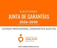 Os informamos que la Junta de Gobierno del Colegio Oficial de Trabajo Social de la Región de Murcia, en sesión celebrada el día 24 de marzo de 2026 ha procedido a la aceptación y publicación de las candidaturas presentadas en tiempo y forma a la convocatoria de la Junta de Garantías.