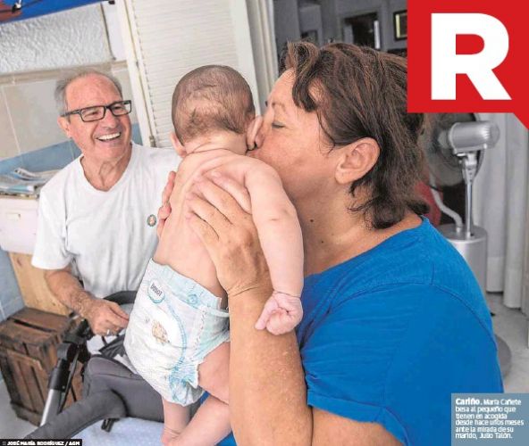 Foto: Cariño. María Cañete besa al pequeño que tienen en acogida desde hace unos meses ante la mirada de su marido, Julio Talón. :: JOSÉ MARÍA RODRÍGUEZ / AGM