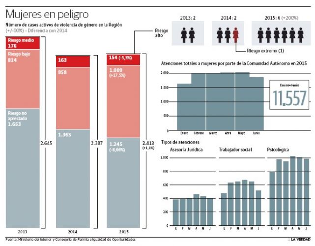 Las murcianas que han recibido atención policial han aumentado un 1% en los últimos meses.