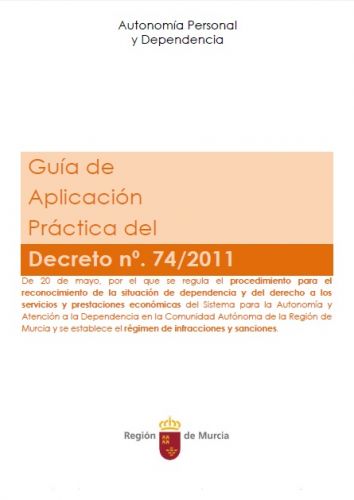 Enlace Guía de Aplicación Práctica del Decreto 74/2011, de 20 de mayo por el que se regula el procedimiento para el reconocimiento de la situación de dependencia y del derecho a los servicios y prestaciones económicas del SAAD en la CARM y se establece el régimen de infracciones y sanciones.