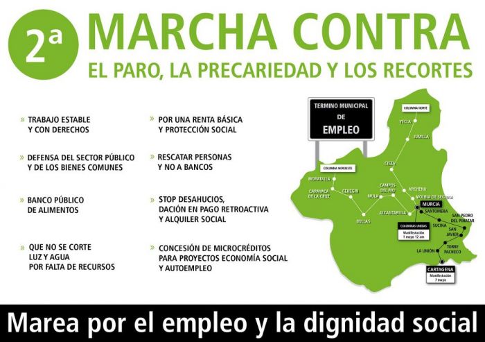 El Colegio Oficial de Trabajo Social de la Región de Murcia apoya la II Marcha contra el Paro, la Precariedad y los Recortes que este sábado inicia sus recorridos, siempre pacíficos, por la Región de Murcia