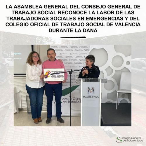 La Asamblea General del Consejo General del Trabajo Social reconoce la labor del Grupo de Emergencias del Colegio durante la DANA